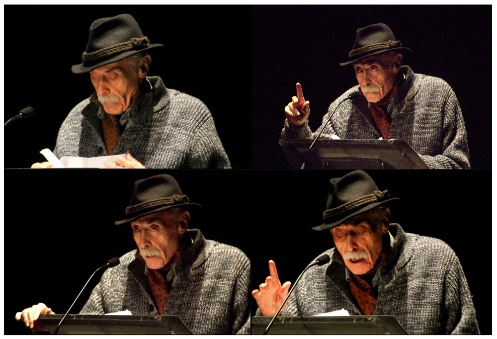 Si a pensarlo llegáis, no os lo creeríais. Es bueno y grandullón como una luna llena recién puesta sobre el horizonte, hondo como la propia vida y como buen castellano vergonzoso y grave y serio, por dentro, como el linar. Cariñoso, afable, desconfiado como un pez e incrédulo como una avutarda aun cuando siempre a Dios tenga en sus vientos. Pero sobre todo lejano, lejano, lejano, lejano…, aunque esté rezumando cercanía y se le escuche, presintiéndolo, a nuestro lado como una camiseta o como un hombro… Sí, lejanísimo e inabarcable, por más que él se nos dé igual que un pan benigno o un sol de junio… E inocente, con aquella inocencia que da la sabiduría y el venir un poco rozado ya de todo en el holocausto que da el haber vivido, intensísimamente, a corazón abierto, sobre la vida, pleno de sueños, realidad y nubes.